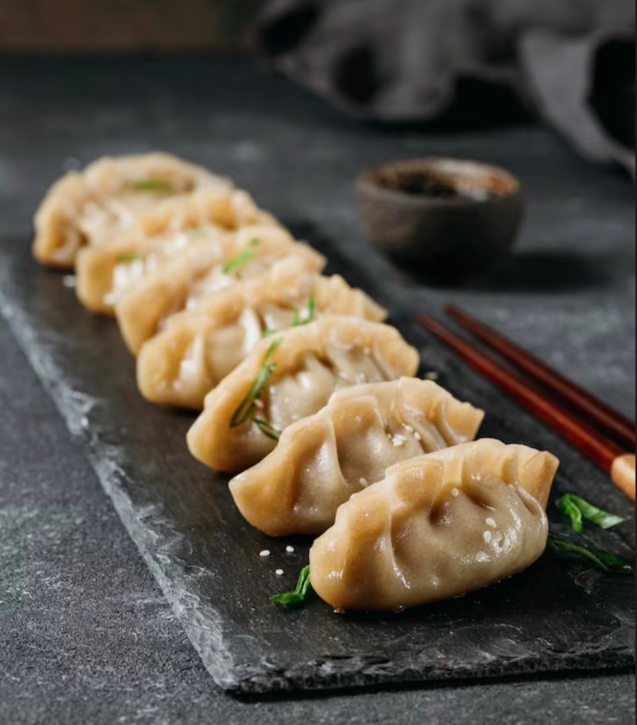 Pepino, aguacate, queso philadelphia, camarón, por fuera plátano frito acompañado de salsa dulce.